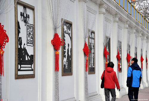 2017年2月7日,上海,在位于沪上历史风貌区的衡山路一处建筑工地的百米围墙上,28幅具有17世纪巴洛克风格的铁艺画作品让路人眼前一亮、为街景带来了独特的艺术人文气息。这座“露天美术馆”就是新亮相的衡山艺廊。这些铁艺作品画面既有浓郁的欧陆风情,又巧妙地融入了中国剪纸的特色风格。使衡山路历史风貌保护区内的临时工地围墙成了一种高雅文化艺术的享受。